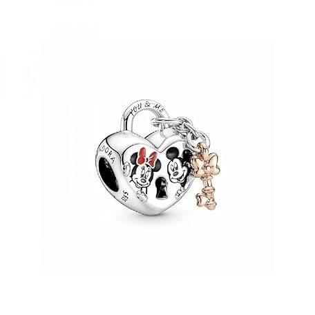 PANDORA Charm Pandora 780109C01 Padlock, Mickey and Minnie, Sterling Silver, Sterling Silver, Enamel
