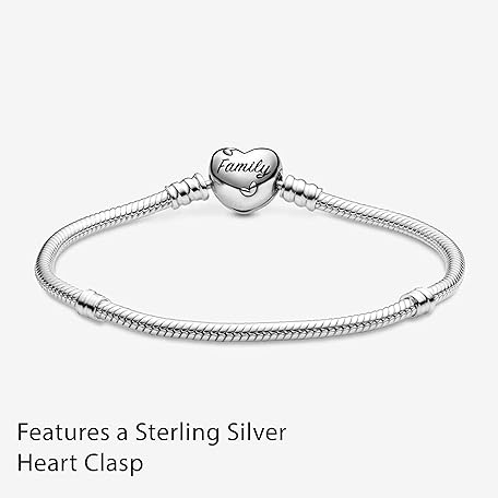 Thông tin sản phẩm PANDORA Moments Family Tree Heart Clasp Snake Chain Bracelet Clear Cubic Zirconia 925 Sterling Silver Charm Bracelet, Metal, Not applicable