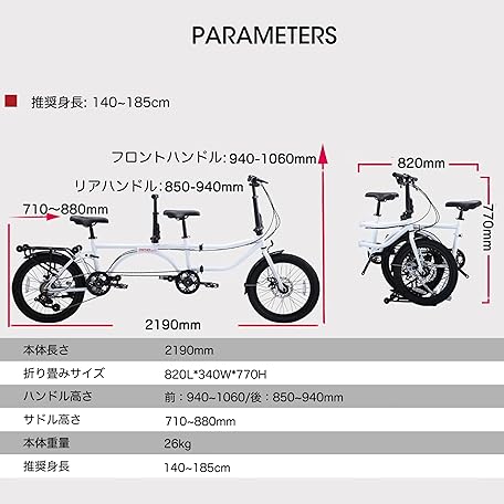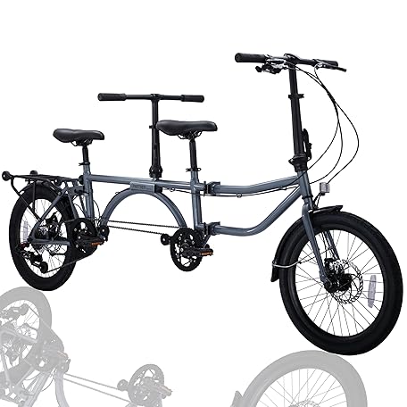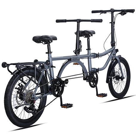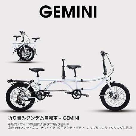• PANTHER Gemini Two-Seater Folding 16-inch Tandem Bicycle, Trifold Specifications, Exterior 7-Speed Shifter, Disc Brake, Semi-Block Tire, Adjustable Handle, Suitable Height 55.1 inches (140 cm) or