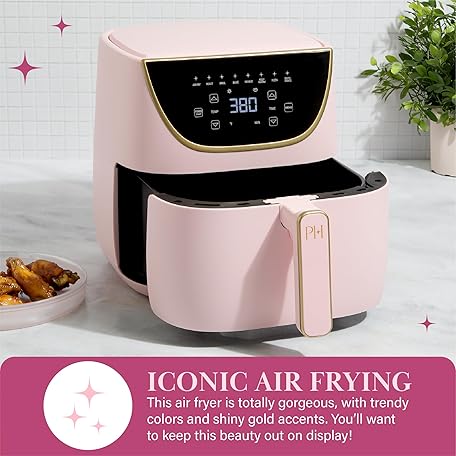 Thông tin sản phẩm Paris Hilton Air Fryer Large Capacity 6 Quart Touch Screen Display 8 in 1 (Air Frying, Roasting, Baking, Reheating, Warming, Pizza, Dehydrated) Dishwasher Safe Non-Stick Basket, Crisper Pink
