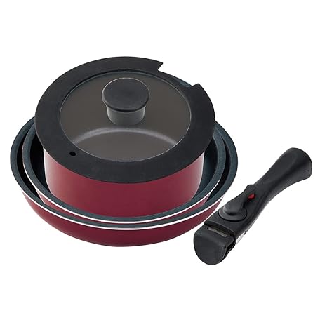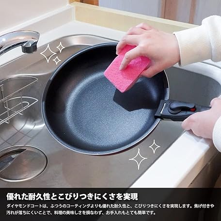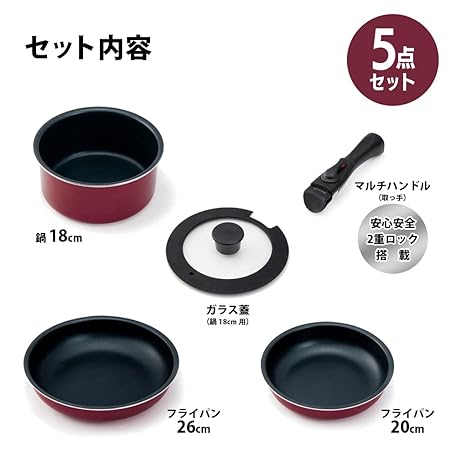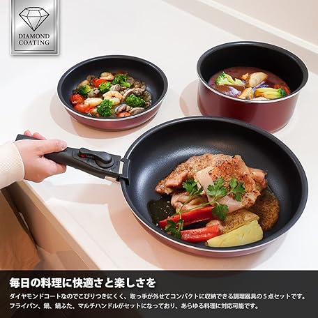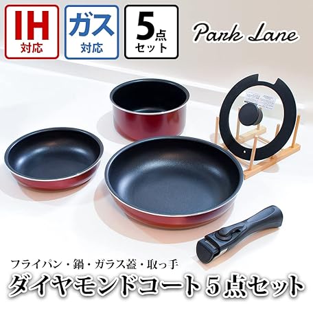 Park Lane K-10028BR Diamond Coated Frying Pan, Induction Compatible, Gas Fire Compatible, 5-Piece Set, Non-Stick, Easy Handle, One-Touch, Compact Storage, Frying Pan