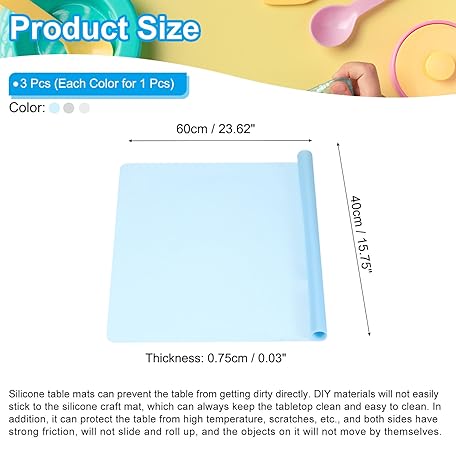 Sản phẩm PATIKIL 大型シリコンマット クラフト用 15.75インチ x 11.8インチ 樹脂用シリコンマット プレイ生地マット エポキシ樹脂用粘土マット アート用 ホワイト/ブルー/グレー 厚さ0.55mm đang được bán với giá ưu đãi là $24.6013 tại nước Nhật.