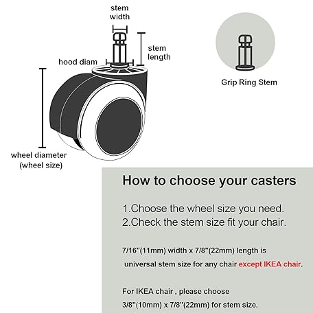 • PChero オフィスチェアホイール IKEAチェア用交換部品 10mmステム(5個セット) 2インチ 高耐久 回転ポリウレタンキャスター IKEAチェア家具アクセサリー ハードウッドフロアカーペットの保護