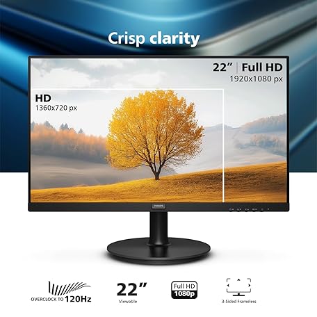 Thông tin sản phẩm Philips 221V8LB3 22" Class Low Profile Full HD Monitor (1920 x 1080), 120Hz, 1ms MPRT, Casual Gaming, Adaptive Sync, LowBlue Mode, VESA Mount, HDMI & VGA