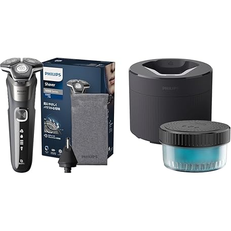 Philips Electric Shaver 5000 Series Men's (45 Blades Rotatable/Skin IQ Technology, Bath Shaving & Washable) S5887/16 Gray (Amazon.co.jp Exclusive) + Cleaning Solution Shaver (Quick Clean Pod Washer