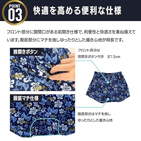 PIKO Trunks for a Smooth and Comfortable Wear, Fabric Men's, Men's Trunks, Underwear, Set of 3, Front Opening, Stylish, Absorbent, Quick Drying, Breathable, Printed Trunks, M, L, LL, Large Size, Surf