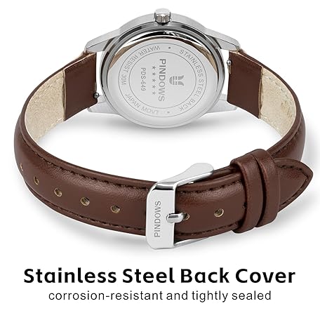 Thông tin sản phẩm PINDOWS Women Watch, Classic Business Analog Quartz Small Ladies Watch, 3ATM Waterproof Fashion Dress Watch with Easy to Read Luminous Dial, Silver Case Brown Strap, Casual Fashion Watch
