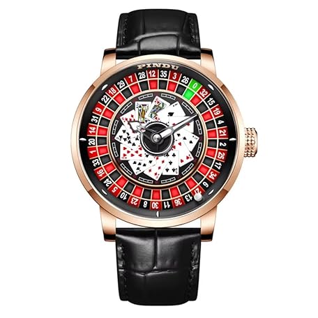 PINDU 6626 Casino Roulette Trump Design Mechanical Watch Japanese Movement, red, casino