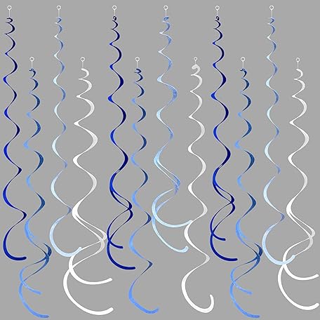 PinkBlume 36pcs Blue Hanging Swirl Ornaments Blue and White Felt Swirl Streamers Spiral Garland Ceiling Decor Wedding Nautical Birthday Decoration Graduation Party Supplies 100th Celebration Nursery