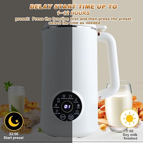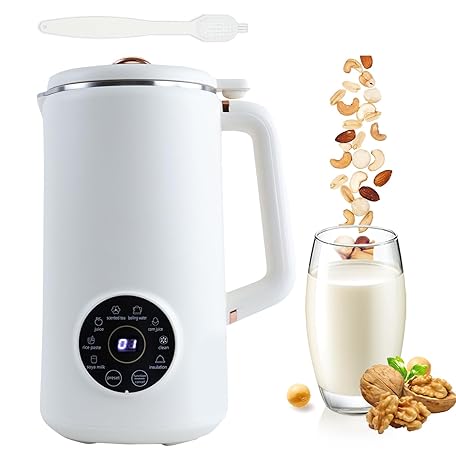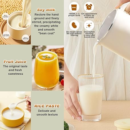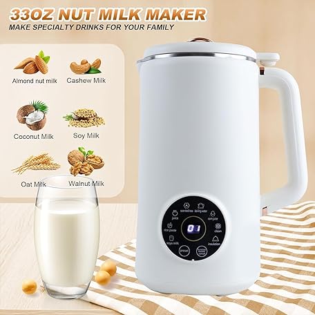 Plant Milk Maker, Soy Milk Maker, 1L Soup Maker with LED Display, Cleaning Brush, Measuring Cup, Self Cleaning, Nut Milk Maker Machine for Homemade Soy Almond, Milkshake, Porridge White