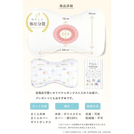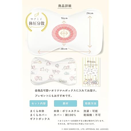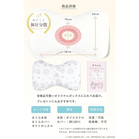 Thông tin sản phẩm [Ponbaby] Sanrio Baby Pillow, Baby Donut Pillow, Wash, Precipice, Head Shape, Orientation, Prevention, Sanrio Characters, My Melody, Chroi (My Melody & Clomi, Baby Pillow)