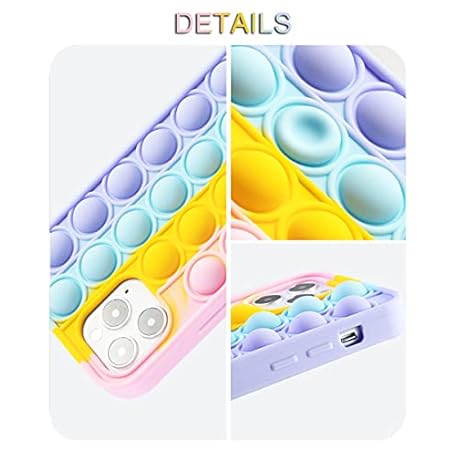 Pop It Phone Case for iPhone 7/6 Plus, Stress Relief Push Pop Bubble Fidget Toy Cover, Cute Funny Soft Silicone Protective Shell for iPhone 8 Plus 5.5 Inch - Rainbow