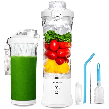 Portable Blender Personal Size Blender for Shakes and Smoothies, 6 Blade Mini Blender 20oz for Kitchen, Home, Travel (White)