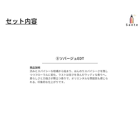 Thông tin sản phẩm (Postal Mailing) Men's Perfume Set, 5 Bottles, 0.04 fl oz (1 ml) Each, Trial (Sauvage EDT, Lazy Sunday Morning, Jazz Club, Nile's Garden, Light Blue) Atomizer Sample Sante Fragrance