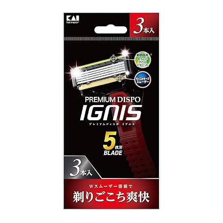 • 貝印 PREMIUM DISPO IGNIS(プレミアム ディスポ イグニス)5枚刃 使い捨てカミソリ 3本入