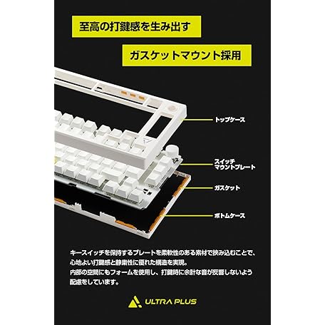Thông tin sản phẩm Princeton ULTRA PLUS Gasket Mount, Gaming Mechanical Keyboard, Japanese Layout, White, 75% Layout/Wired, Wireless, Compatible with Both RGB Light/Hot Swapping/Silver Axis UP-MKGA75-J/WH