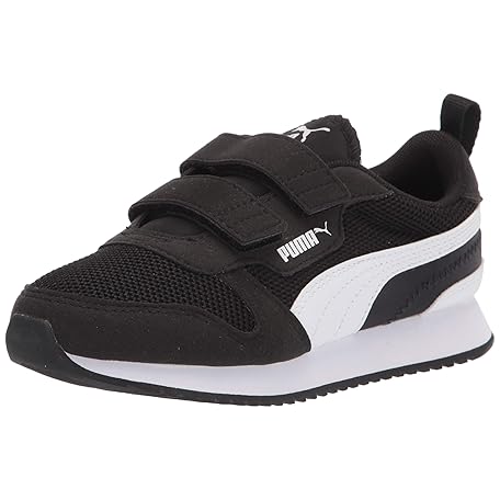 PUMA Kids R78 Hook and Loop Sneaker, Black White, 4 US Unisex Toddler