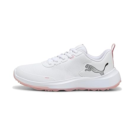 PUMA (プーマ) 男女兼用 子供用 ゴルフシューズ, Puma ホワイト-バラ色のOutlook-ジャスミンフラワー, 2.5 Big Kid