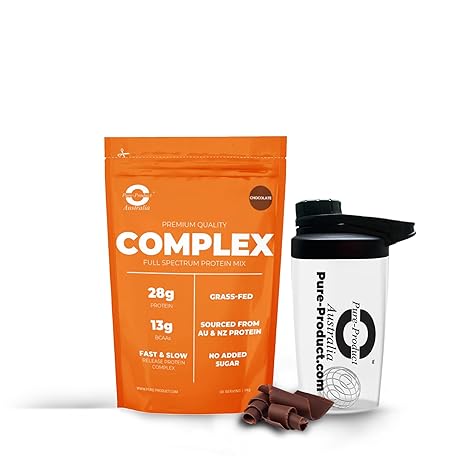 Pure Product Australia Pure Complete Whey Protein Blend WPI/WPC/Casein Powder Chocolate 2KG with Glass Shaker