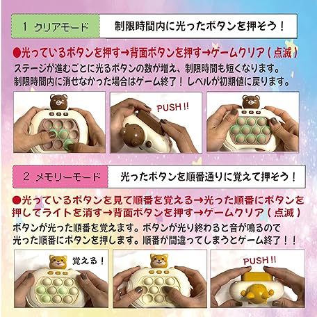 Sản phẩm Push Pop Game, Educational Toy, Glowing, Fast Press Bodan, Electric Game, Squeeze, Concentration, Stress Relief, Fingertip Education (Bear Design) đang được bán với giá ưu đãi là $10.682 tại nước Nhật.
