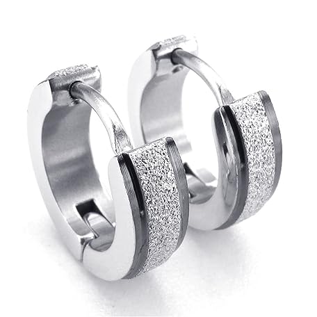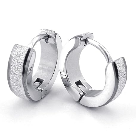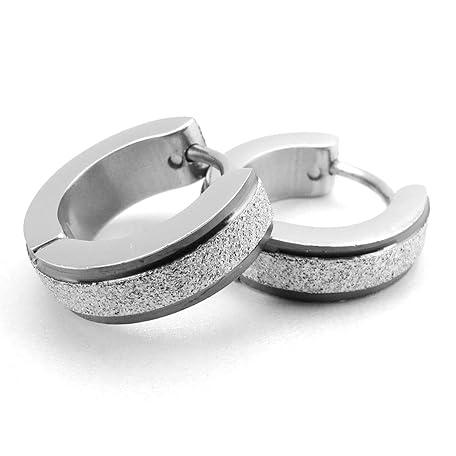 Thông tin sản phẩm PW 316L Stainless Steel Sandblast Silver Hoop Earrings, Simple Sandblast, Wrapping Compatible, Stainless Steel