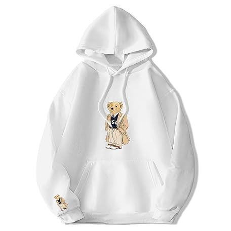 QDHLXSZ Bear Hooded Sweatshirt, Pullover, Long Sleeve, Hooded T-Shirt, Top, Solid, Hoodie, Loose, Casual, Large Size, Fashionable, Popular, Unisex, S-3XL, White-style, M