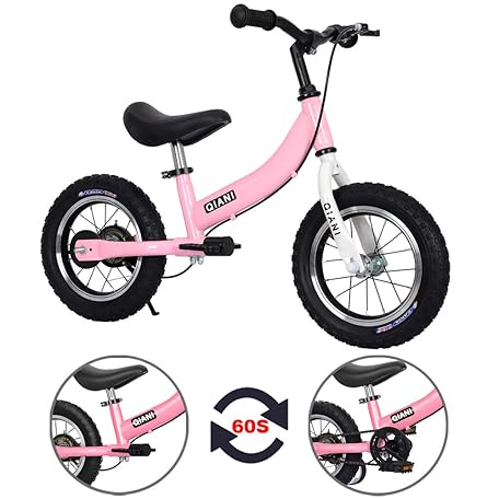 Qiani No Pedal Bicycle Children Bicycle Kick Bike Suitable for 2-in-1 2 3 4 5 6 7 Years Old Boys Girls 12 14 16 Inch with Pedals and Handbrake Blue Red Pink