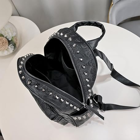 Queen-b Skull Backpack, Studded Backpack, Casual, Skull, Skull, Skull, Stylish, Unisex, Unisex, Backpack, PU Leather, Black