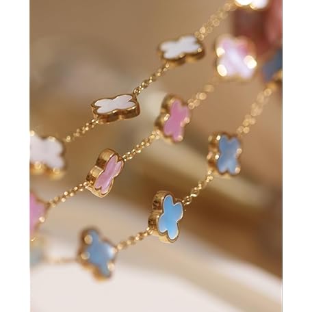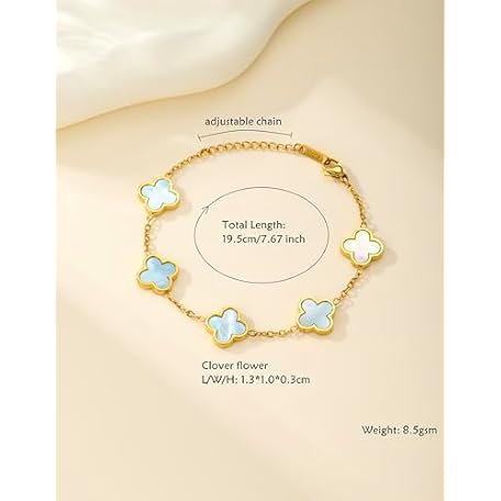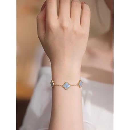 • RADIANT REVIVE 本物のマザーオブパールの四つ葉のクローバーブレスレット、18Kゴールドメッキの上品なジュエリー、幸運のチャームの女性へのギフト(パールホワイト/オーシャンブルー/スイートライラック)