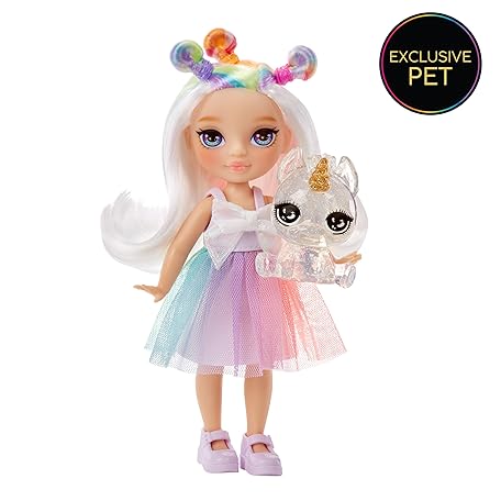 • Rainbow High Littles - Opal Rain, 5.5 Inch Rainbow Posing Doll with Handbag, Magical Pet Unicorn Toy Gift for Girls, Age 4-12
