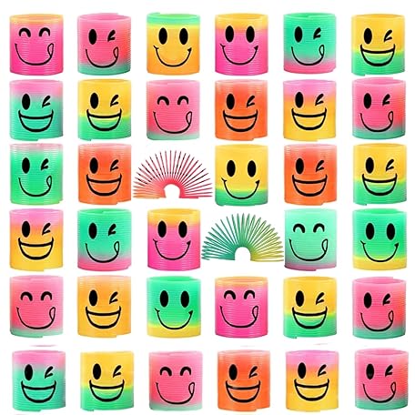 Rainbow Spring Cute Smile Elastic Spring Toy Stretching for Prizes Lottery Festival Magic Tricks Pack of 36