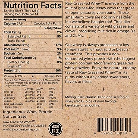 Thông tin sản phẩm Raw Grass Fed Whey - Happy Healthy Cows, COLD PROCESSED Undenatured 100% Grass Fed Whey Protein Powder, GMO-Free, 12 oz by Raw Grass-Fed Whey