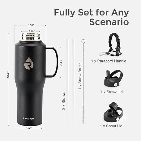 Thông tin sản phẩm RAYMYLO Water Bottle 32oz, Insulated Tumblers with Handle & Straw Lid & Paracord Handle, Triple Wall Vacuum Food-grade Stainless Steel Leakproof Hydro Travel Flask, Fit in Any Car Cup Holder
