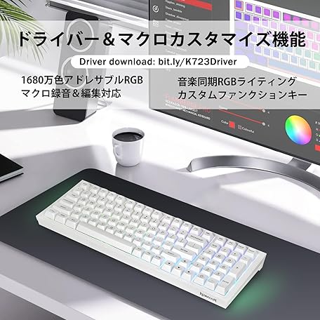 Sản phẩm Redragon K723 ゲーミングキーボード ワイヤレス 銀軸 スピードリニア 3モード接続 メカニカル ホットスワップ対応 RGBバックライト テンキー付き BT 5.0/2.4GHz無線/USB有線 英語配列 96% ガスケット構造 Nキーロールオーバー 4000mAh PC/Mac/PS5/Xbox/スマホ対応 (ホワイト) đang được bán với giá ưu đãi là $80.7799 tại nước Nhật.
