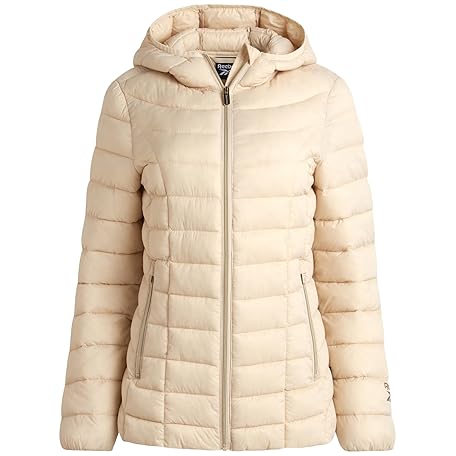 Reebok レディース パファージャケット - 軽量 パッカブル スノーグレイシャーシールド キルト ウィンターコート 女性用 フード&ジップポケット付き, シャンパン(Chartreuse), X-Large