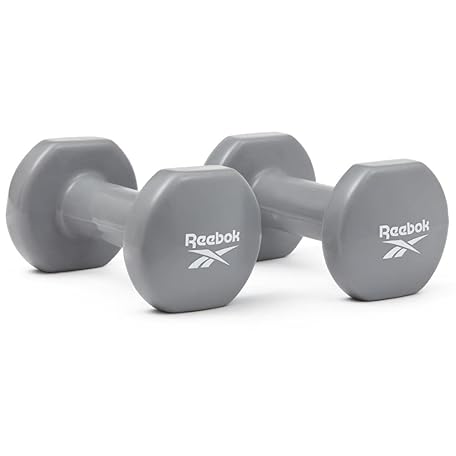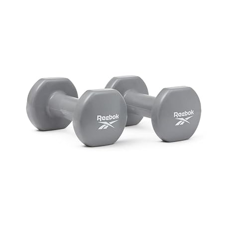 Reebok Dumbbells, 2.2 lbs (1 kg), 4.4 lbs (2 kg), 6.6 lbs (3 kg), 8.8 lbs (4 kg), 15.0 lbs (5 kg), Set of 2, Iron Array, Iron Array, Strength Training, Weights, Coated Dumbbells