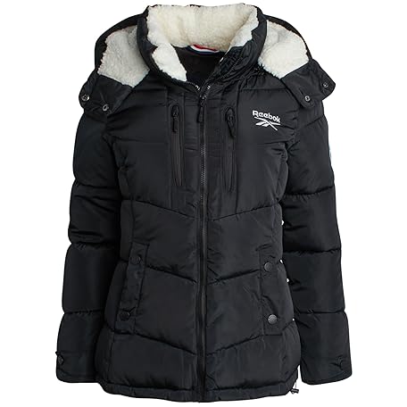 • Reebok レディース パファージャケット - フェイクファートリムフード付きヘビーウェイトパファーコート - 女性用アウターダウンウィンタージャケット, クラシックブラック, Medium