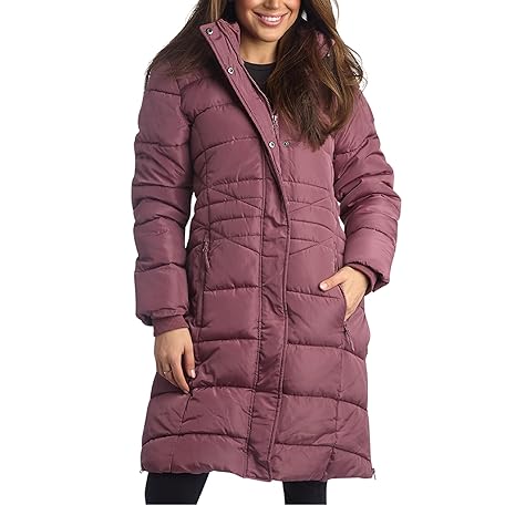 Reebok レディース マキシパファージャケット - ロング丈パーカー - ヘビーウェイト 防風 & 防水 保温 冬用ジャケット 女性用, ダークダスティローズ。, Medium