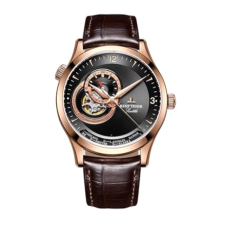 • Reef Tiger 高級時計 メンズ腕時計 ピンクゴールド 自動時計 RGA1693