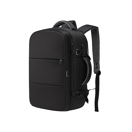 • RELY+ トラベルバックパック キャリーオンバックパック USB充電ポート&シューズポーチ付き, ブラック, 2XL, カジュアル。