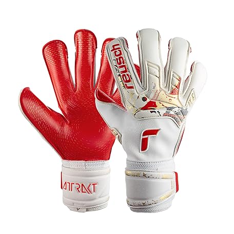 Reusch Attrakt Gold X GluePrint Ortho-Tec ゴールキーパーグローブ、ホワイト/ゴールド/ファイアレッド、サイズ8