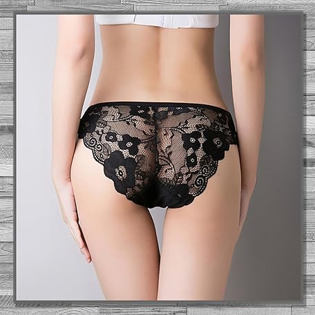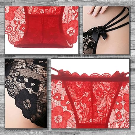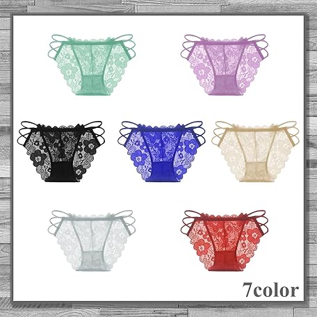 Rex Standard PS174 Women's Full Lace See-Through Floral Panties, Ribbon, Cord, Sexy Underwear