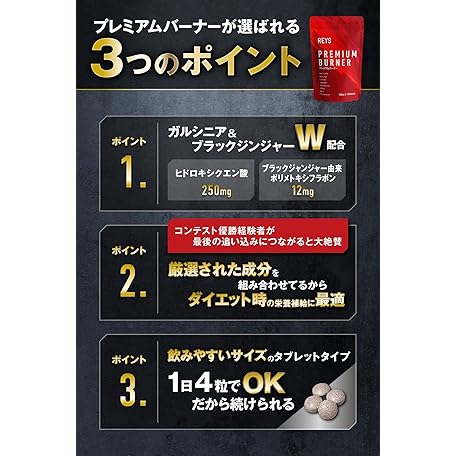 Thông tin sản phẩm REYS Raise Premium BURNER Premium Burner, 120 Tablets (Recommended for Use Approximately 30 Times), Supervised by Reiaki Yamasawa, 8 Carefully Selected Ingredients, Garnicia (HCA), Black Ginger