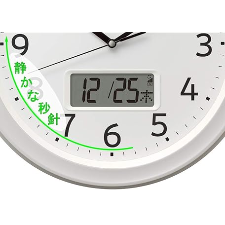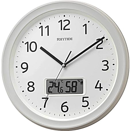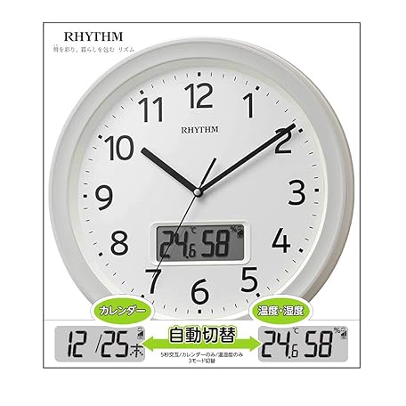 • リズム(RHYTHM) 掛け時計 電波時計 アナログ デジタル 連続秒針 温度 湿度 カレンダー 白 Φ32.5x5cm 8FYA02SR03