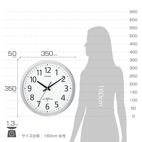 Thông tin sản phẩm リズム(RHYTHM) 掛け時計 電波時計 オフィス 連続秒針 静音 シルバー Φ35×5cm オフィス用品 事務所 スペイシーM462 シチズン CITIZEN 8MY462-019