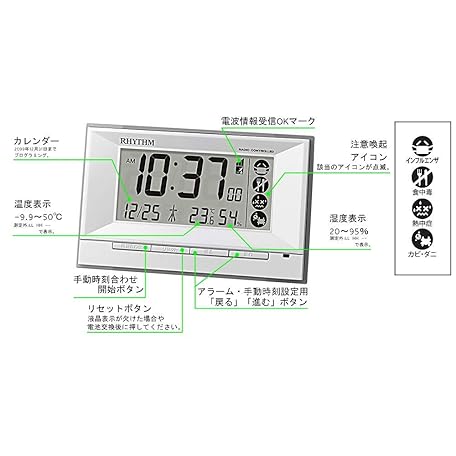 Sản phẩm リズム(RHYTHM) 目覚まし時計 電波時計 デジタル 温度 湿度 カレンダー 熱中症 白 8.8x14.3x4.2cm 8RZ207SR03 đang được bán với giá ưu đãi là $16.8623 tại nước Nhật.