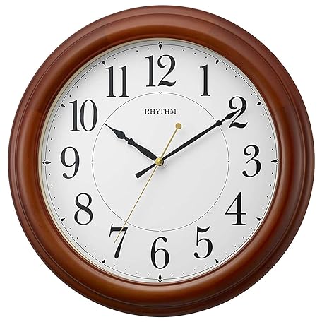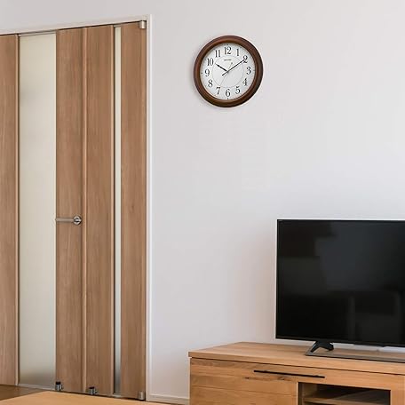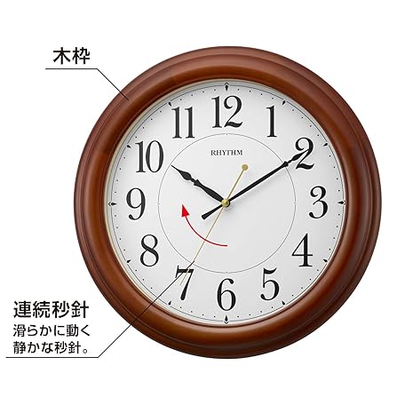 RHYTHM 8MG816SR06 Wall Clock, Continuous Second Hand, Wooden Frame, Brown Semi-Gloss Finish, φ13.0 x 1.8 inches (33 x 4.6 cm)
