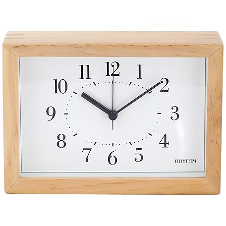 RHYTHM 8RE676SR06 Alarm Clock, Continuous Second Hand, A6 Size, Interior Clock, Wood Frame, Brown, 4.1 x 5.8 x 2.0 inches (10.5 x 14.8 x 5.2 cm), RHYTHM PLUS
