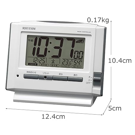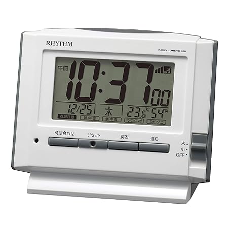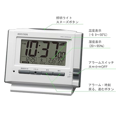 RHYTHM 8RZ222SR03 Alarm Clock, Radio Clock, Electronic Sound Alarm, Temperature, Humidity, Calendar, Light Included