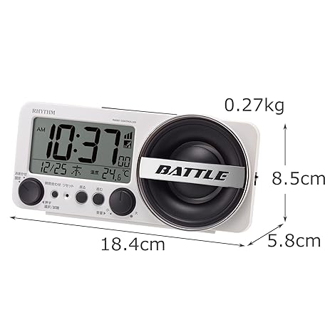 Rhythm 8RZ230SR03 Alarm Clock, Radio Clock, Loud Volume, 1,000 Patterns, Electronic Sound, Alarm, Backlight, Digital, Fit Wave Battle 230, White, 3.3 x 7.2 x 2.3 inches (8.5 x 18.4 x 5.8 cm)